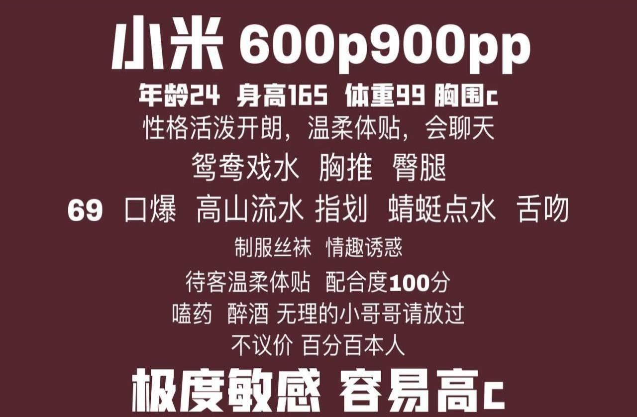 听闻小米老师以敏感著称,把小米老师放进收藏夹,当天就联系了,本来是要约第二天头课的,没了,只好约到下午,下午出门,没想到路上堵成狗,迟到了大半个小时,老师也没有责怪,就问老师能不能把课推后,老师说可以,然后顺利到了老师房间,首先老师帮洗,接着口,然后 a 面,之后戴上套,先来女上, Is 有点敏感,换了后面,老师反应就更大了,最后正面出货,老师也不催钟,就是苦了后面那哥们,因为我的迟到,冷风中等了半天,实在不好意思,下次一定提前到达。