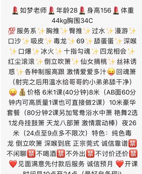 年前约了小姐姐新年回来二刷,服务好照片比人好看,喜欢活好会玩又能玩三通的找小姐姐不会失望,体验满足欢喜而归,价格实惠朋友们去试试吧