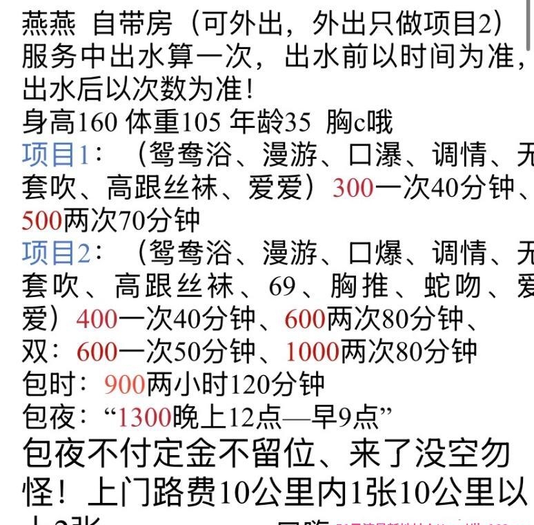 服务项目: 鸳鸯浴 漫游 口瀑 调情 开套吹 高跟丝袜 爱爱