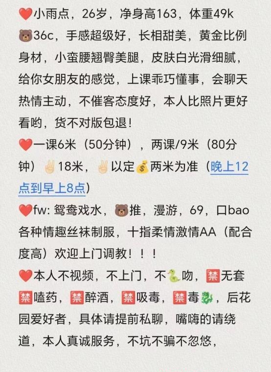 加了联系方式,看课表觉得不错,于是开车过去,有轻度美颜,但总归是真人,服务很赞,非常认真,先洗澡,再做服务,毒龙69深喉舔蛋都面面俱到,姿势配合到位,小骚逼也很紧,难得的不踩坑的姐姐