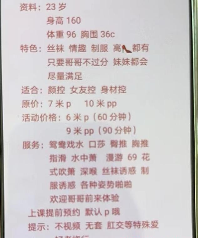 人照一致,妹妹属于娇小型的,但是颜值真的高,身材也特别好,除了长得不高,服务也很周到,不催,很会调情,长得小家碧玉,但是很骚,口活一绝,媚眼如丝,有制服丝袜可以选择,还有JK制服,这个必选,很有感觉做起来,不机车
