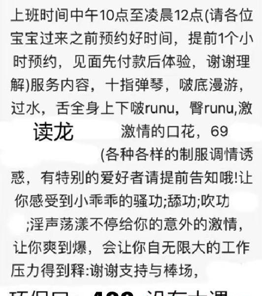 反复多食的妹子、最近出来玩觉得挺不错的一个,小姐们清纯够骚,玩得开。不催人,不机车,服务很配合不催人,口的时间也很长。。服务有种谈对象的感觉,让人觉得钱花得值啊,不像现在很多小姐那么敷衍机车催人(加小姐姐备注:网网来滴)