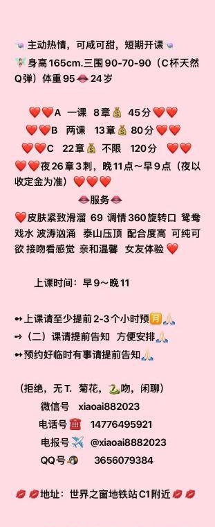反复多食的妹子、最近出来玩觉得挺不错的一个,小姐们清纯够骚,玩得开。不催人,不机车,服务很配合不催人,口的时间也很长。。服务有种谈对象的感觉,让人觉得钱花得值啊,不像现在很多小姐那么敷衍机车催人(加小姐姐备注:网网来滴)