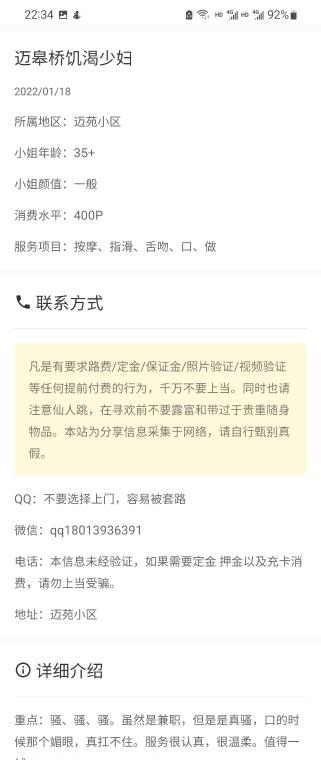 这个骚逼娘们昨天下午去找她的,之前加了有几天了都没约成功,她家里有孩子上学,每天也只有白天有时间,但时间也不固定都是以当天她联系我就过去。晚上也她家不方便孩子放学在家,你自己还要花钱开宾馆才行。下面说说这骚逼怎么骗我的,希望大家别再上当了我就是最好的例子。不知道哪位兄弟给她帖子挂网站上的说的服务多好又是很骚啥的真是一派胡言。就在昨天和她谈好价格500两次,由于我也在迈皋桥附近离她不远,在扣扣里问了好多遍服务真的假的,说真的,最后她空间有个照片就是我发的最后一张穿连衣丝袜的合并的照片,我问她这是你本人吗?她说:是我本人。最后我问她洗澡吗?说陪,有颜射吗?说:都有别问了。完了我下午去了。开门一看和照片就不是一个人,完了我想来也来了做一次吧,最后我脱衣服发现她室内还有摄像头不知道怎么想的,我当时有点怕想走她不让走,最后做一次给你3得了不行,说跟我说好5米两次的,最后做了一次让她退一百不退,因为她的原价就是4一次。陪洗澡没有说我都洗了,我说:不是你洗不洗的问题,你的本职工作你是给客人服务对吧,你就算洗了也要陪一下不是说身上有灰才洗吧。上床上服务时就是口活亲你胸别的啥也没有。亏大了,操他妈的。之前我和她联系过去年但一直没去才3米一次那会我记得。真的太让人生气了,挂羊皮卖狗肉的女的太多了。尤其这种老女人一点脸不要还不不如年轻的小姑娘服务呢?起码说啥是啥看不上走人对吧。她还强买强卖看不上还不让你走,日你妈了,真的被她气死了。发出来告诉爱玩的兄弟别上当了。