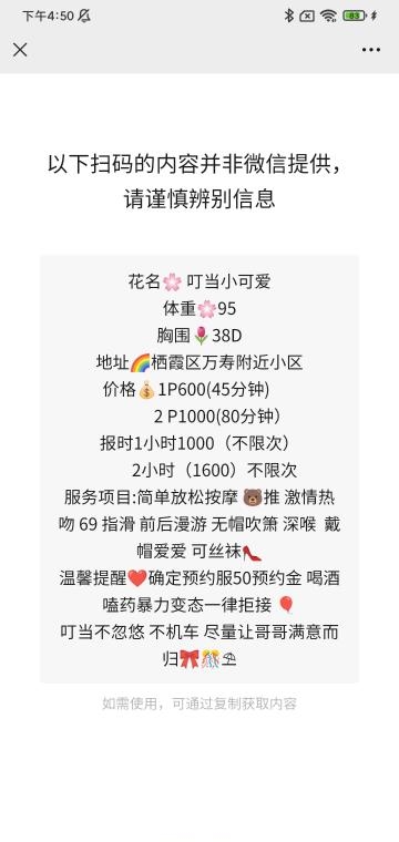 地址在万寿那边,交通不是很方便,要打车过去。服务型小姐姐,车票6张一次,妹服务态度好,人非常温柔,说的服务基本上全都有,会在床上诱惑你,真的让人血脉喷张。还可以要求丝袜制服,扎双马尾,然后后入的感觉太棒了。最近休息了,开课之后值得去体验一下