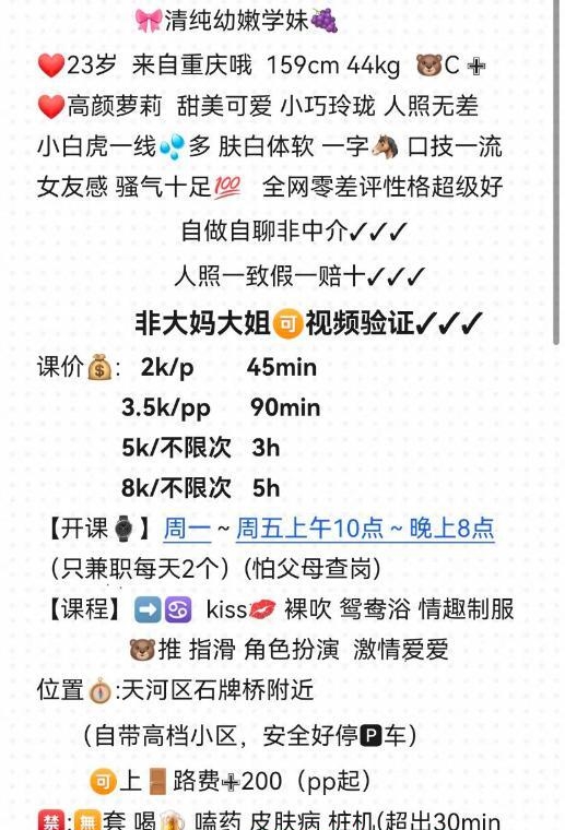 朋友介绍的,正好昨天没事去体验课一下!本狼不太会描述,就直接说点重吧! 妹子23岁,个子很高感觉比我还好点,大长腿身材好,打扮的是个御姐类型,服务很配合,臀部手感很好,屁股翘起来特诱人! 按流程进行的,服务中差点没忍住就去了,姿势配合,完了一点也不催人,不机车,妹子的确很不错!但有点高冷的感觉,但不影响我的心情!由于本狼不太喜欢SM重口味服务,所以服务做的常规全套服务!5张就是常规操作,不做sm这这价格可以优惠一张!但提前要和她谈好。 做sm就要加一张!这点必须好评!因为憋了好久了,和她做了很多姿势,下面水特别多,都流床单上了!妹子奶子很敏感,洗完澡就一直抱着吃大胸,把她整个人都亲软了,胸特别大,抓起来很爽BB很紧!操起来还有水声,叫声很好听! 这就是本狼的体验感受,总体来说除了有点高冷其它服务都不错!最后本狼强烈推荐!